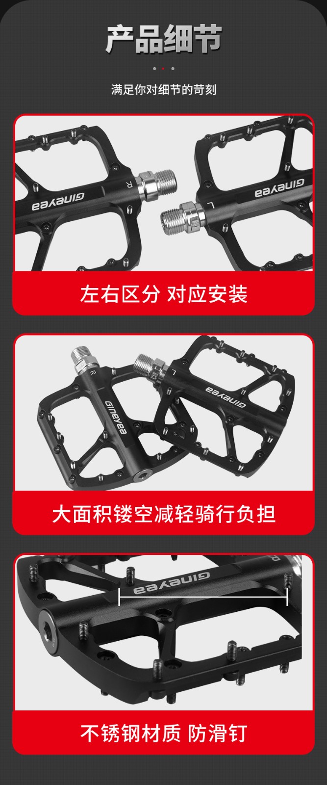 Gineyea碳纖維腳踏自行車公路車山地車防滑釘踩面鈦合金軸腳踏