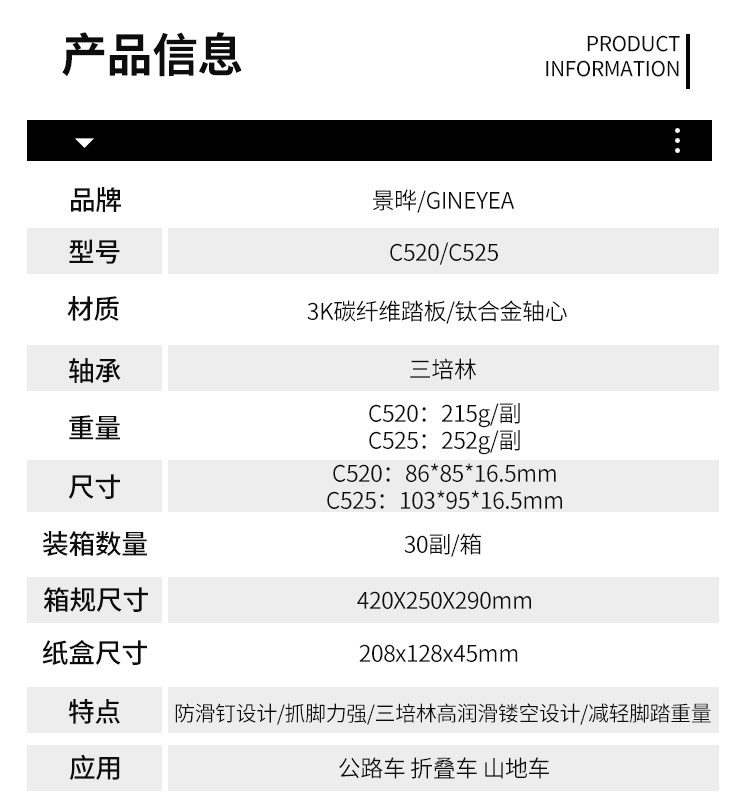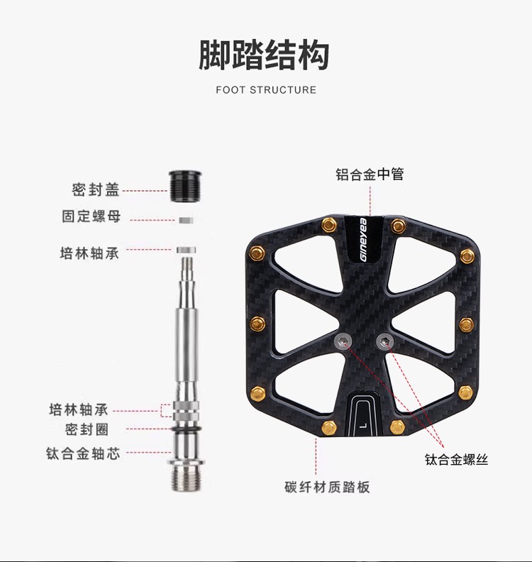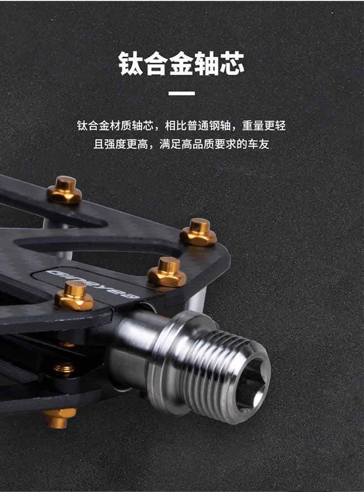 Gineyea碳纖維腳踏自行車公路車山地車防滑釘踩面鈦合金軸腳踏