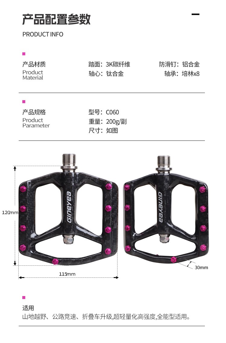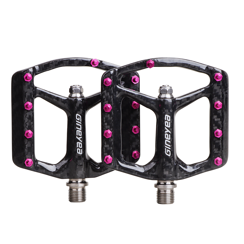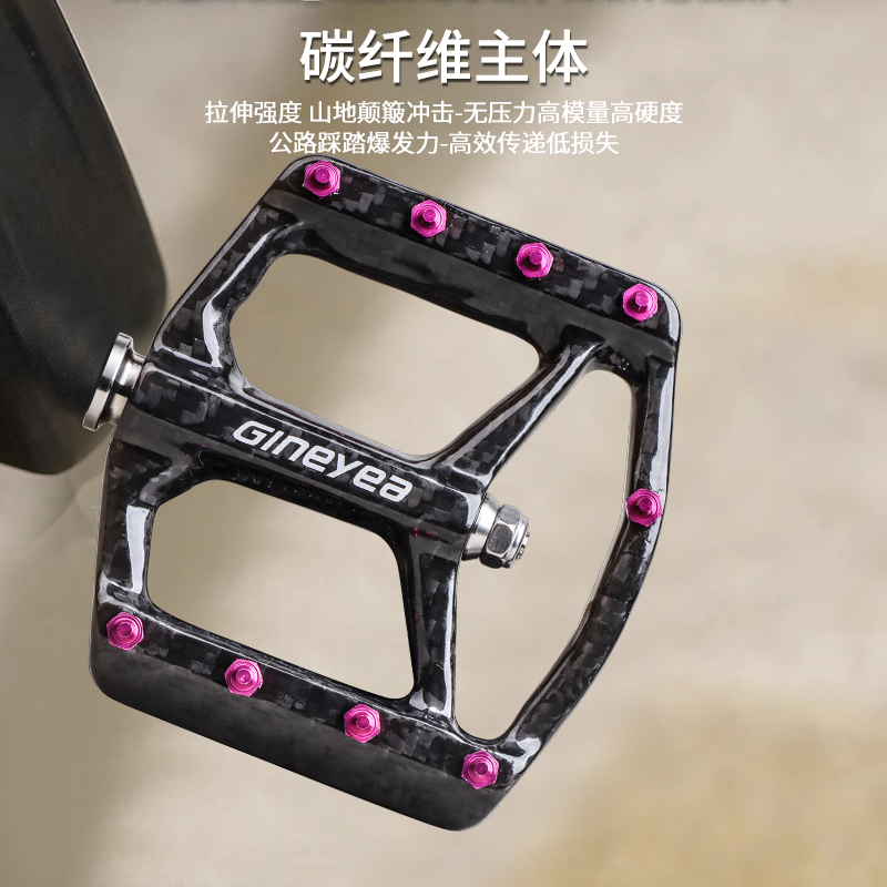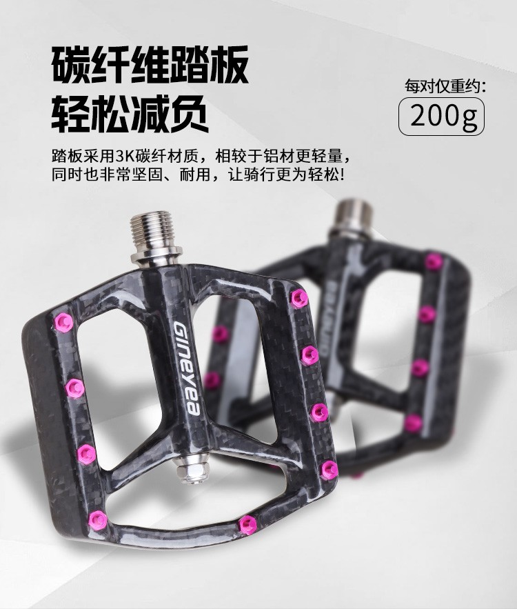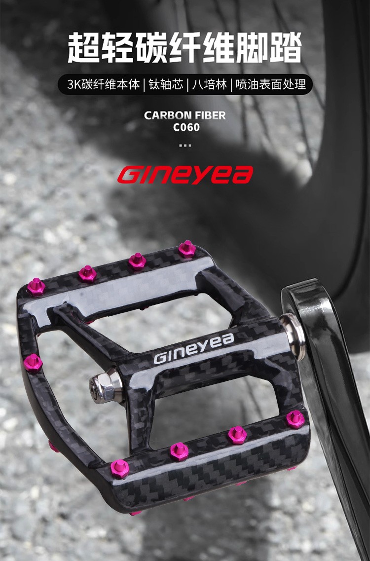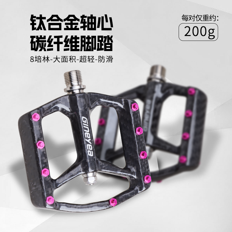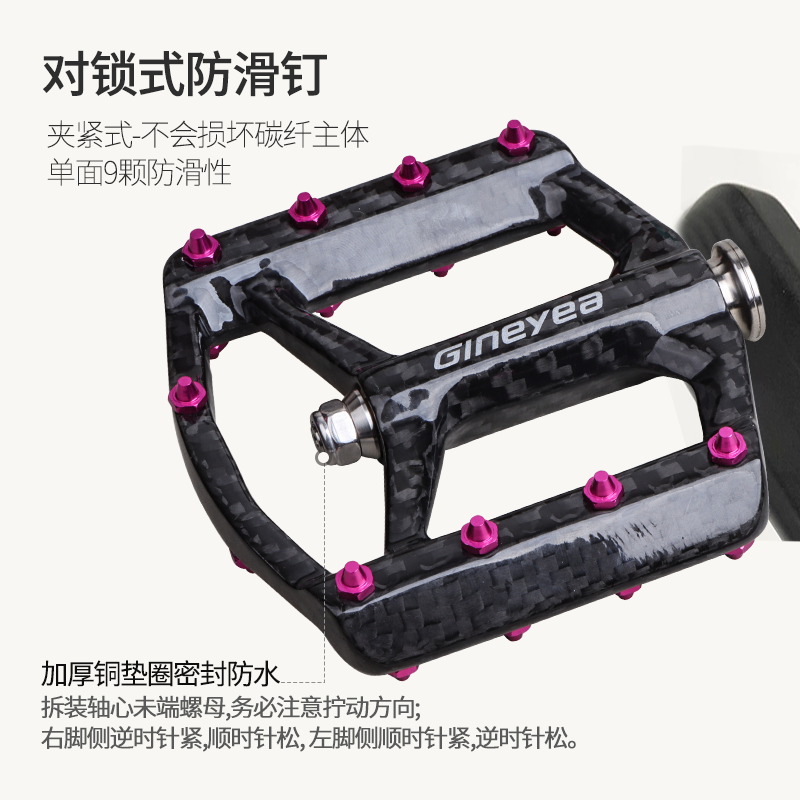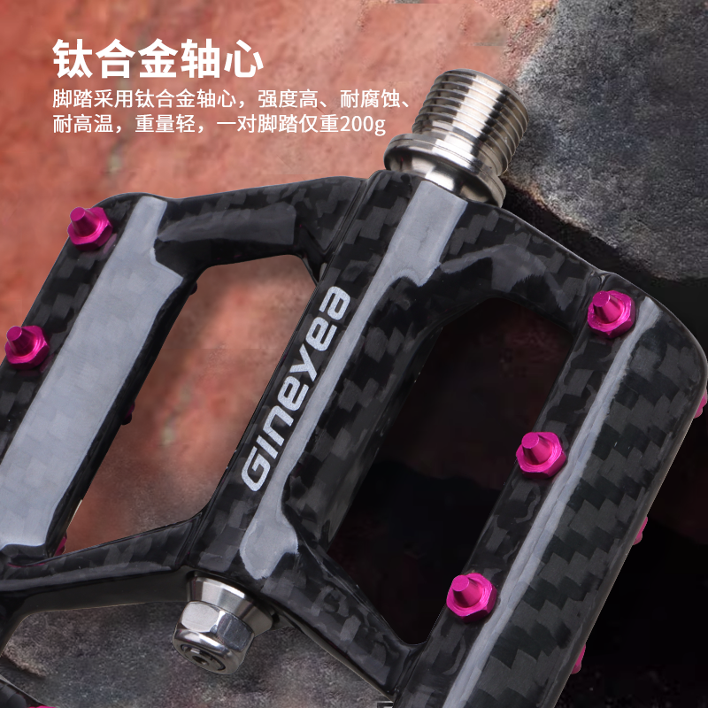 Gineyea碳纖維腳踏自行車公路車山地車防滑釘踩面鈦合金軸腳踏